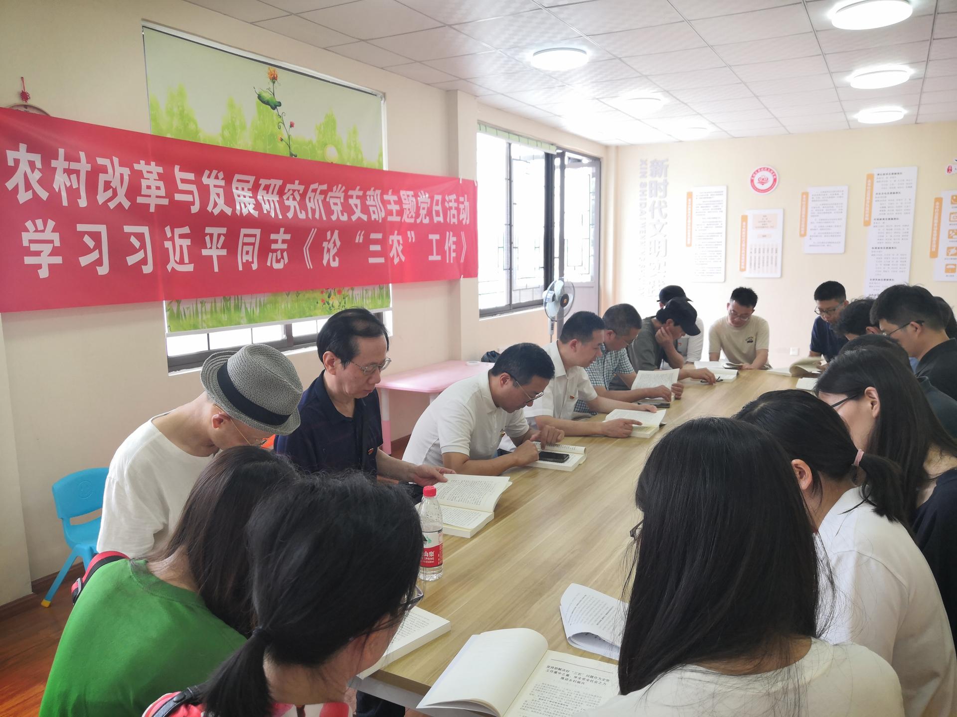 农村改革与发展研究所党支部始终坚持把学习习近平总书记关于“三农”工作重要论述作为支部工作主题主线,坚持党建与业务深度融合,在乡村振兴、粮食安全等高层次人才培养、科学研究和社会服务方面取得了丰硕成果。