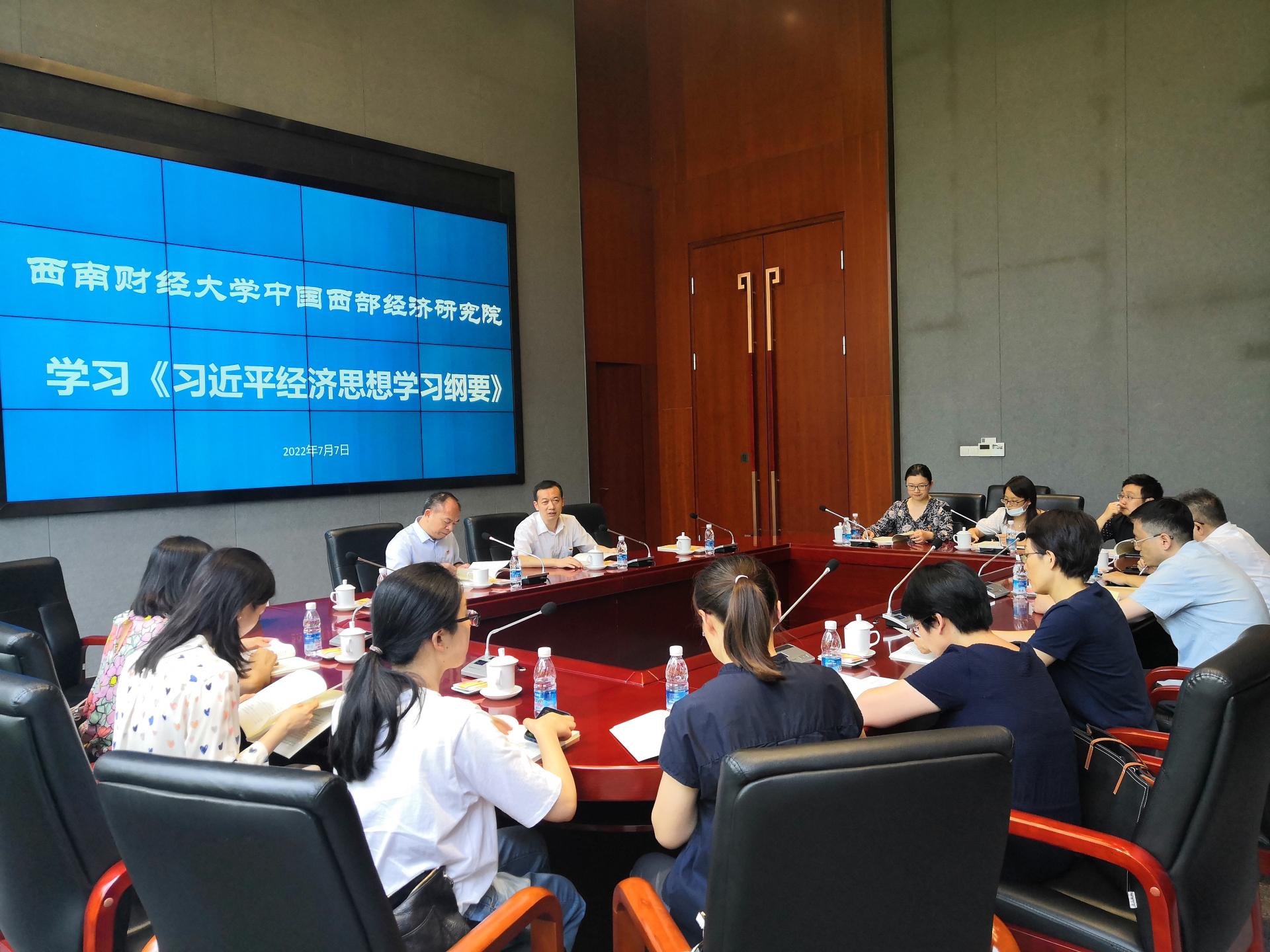 党委书记杨奇才在学习会上谈到,《习近平经济思想学习纲要》为我们全面深入系统学习研究习近平经济思想提供了基本遵循和文献基础,我们要结合自身的学科特点、专业方向,结合成渝地区双城经济圈建设、新时代西部大开发等重大战略,深入学习、持续研究,积极参与四川现代化经济体系建设、成都公园城市建设等重大实践,切实为服务国家战略、为促进西部经济高质量发展做出贡献。