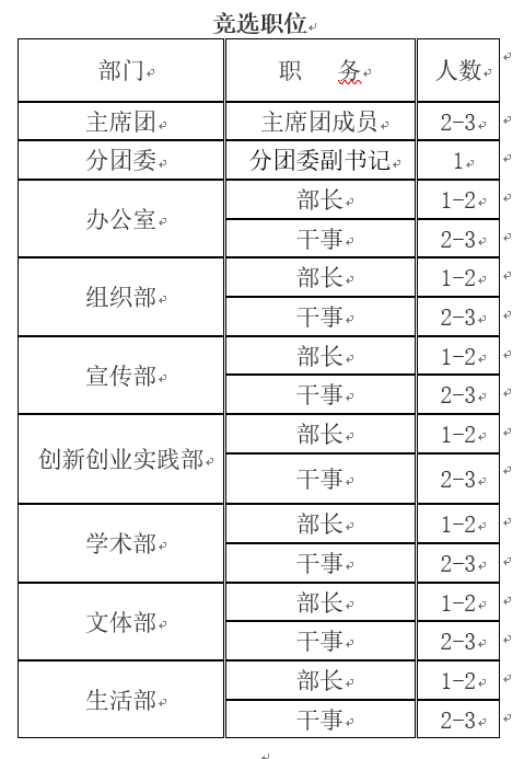 注:每位参选人可自由竞选1-2个职位。具体岗位数量根据实际情况进行调正。