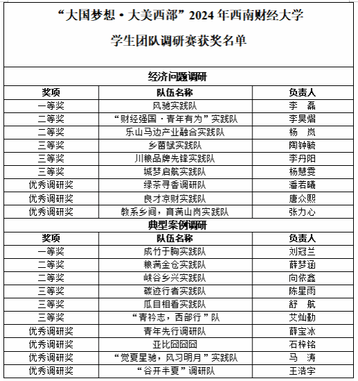 “大国梦想·大美西部” 2024年禁漫 学生团队调研赛以“强化思想引领、聚焦经济发展、展现大美西部、成就大国梦想”为主题,围绕西部乡村振兴、西部产业发展、西部区域协调、西部对外开放四大板块开展,经资格审核、匿名评审等环节,最终拟定“大国梦想·大美西部” 2024年禁漫 学生团队调研赛获奖名单如下: