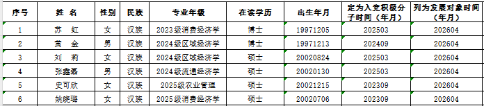 经各支部委员会研究,拟确定苏虹等6名同志为第22期发展对象。根据发展党员工作有关要求,现将其有关情况公示如下: