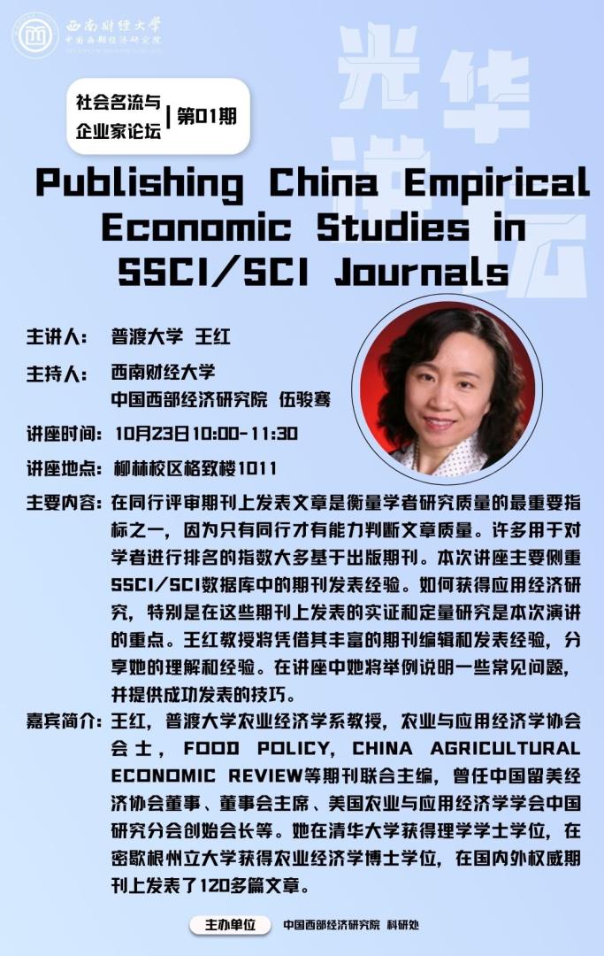 主题:Publishing China Empirical Economic Studies in SSCI/SCI Journals在SSCI/SCI期刊发表中国经济实证研究