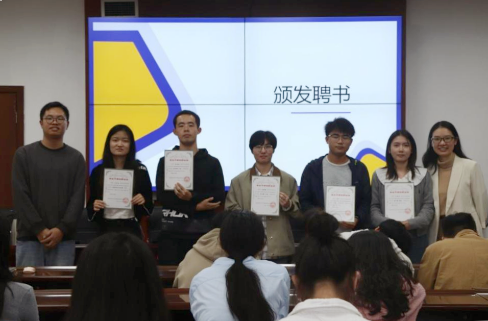 辅导员肖霄老师、徐跃辉老师、两届主席团成员及各部门同学参加会议。
