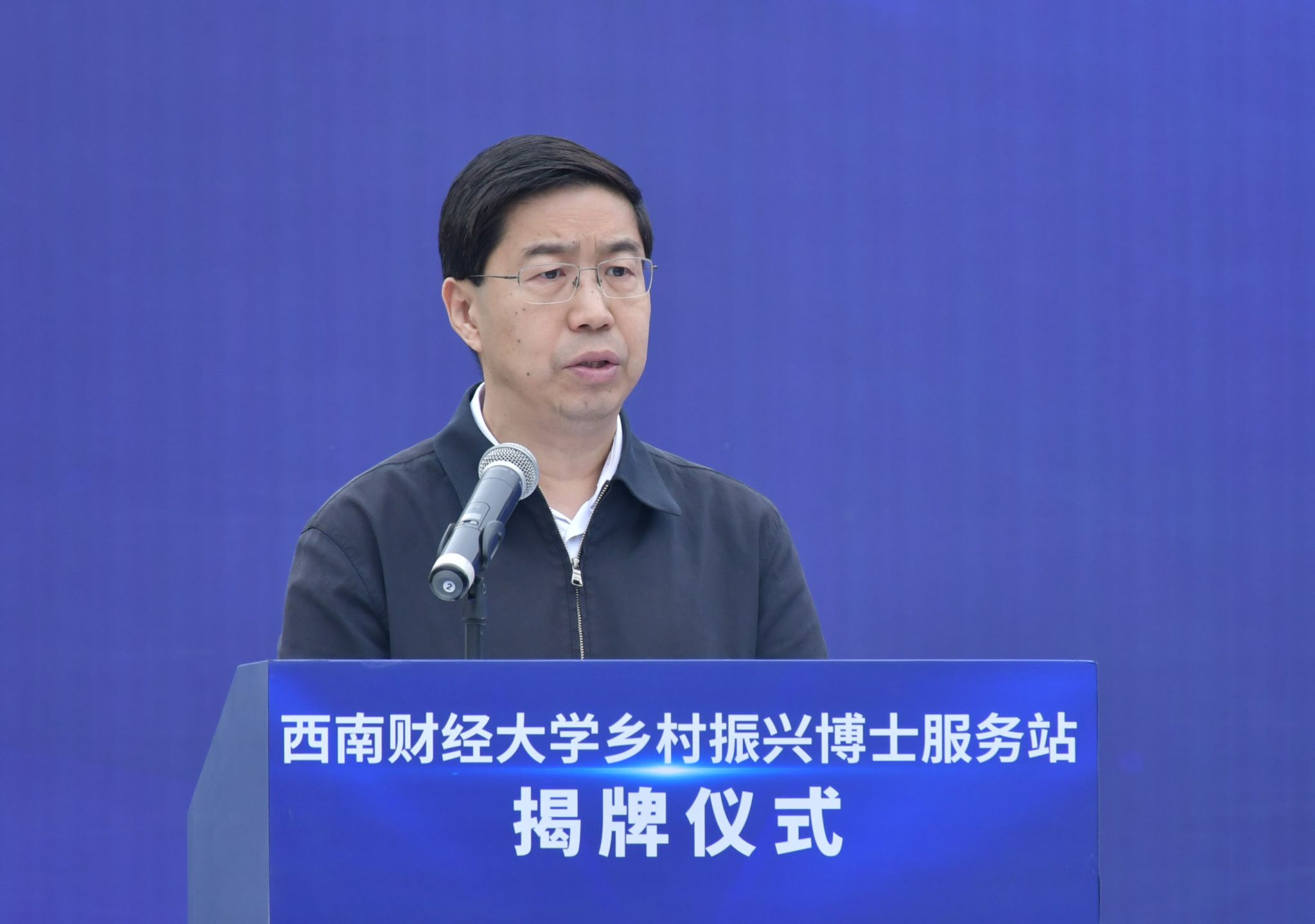 赵建军在致辞中介绍了学校99年光辉的办学历程及金融学、会计学等独特的学科优势和农业经济学、产业经济学等悠久的学科传统,介绍了学校建立乡村振兴博士服务站的背景与愿景。他对乡村振兴博士服务站建设提出殷切期望,强调要坚持问题导向,把博士服务站建成“三农”问题的研究基地;要强化思政引领,把博士服务站建成立德树人的育人基地;要深化校地合作,把博士服务站建成“四链融合”的示范基地。赵建军强调,乡村振兴博士服务站要坚持地方所需、高校所长,充分发挥学校的学科和人才优势,集合全校资源开展服务,切实解决地方在决策咨询、发展规划、人才引育、干部培训等方面的实际需求,推动教育链人才链创新链产业链深度融合,赋能县域经济高质量发展。赵建军感谢德阳市、中江县的校友对母校发展的支持,盛情邀请广大校友2025年回校参加100年校庆盛典。