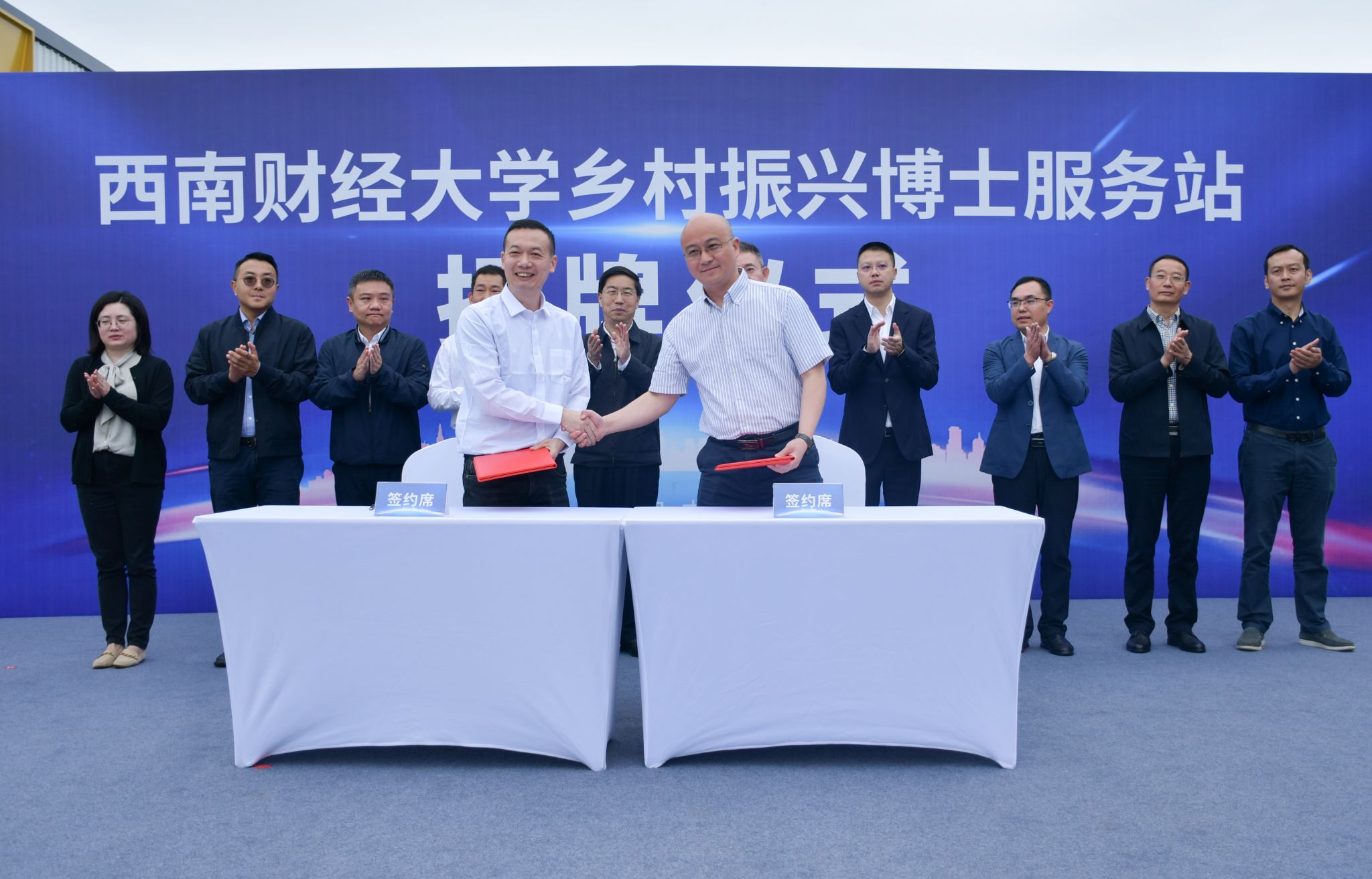 党委书记杨奇才与中江县委常委、组织部部长钟洪伟共同签订《“乡村振兴博士服务站”合作共建意向书》。