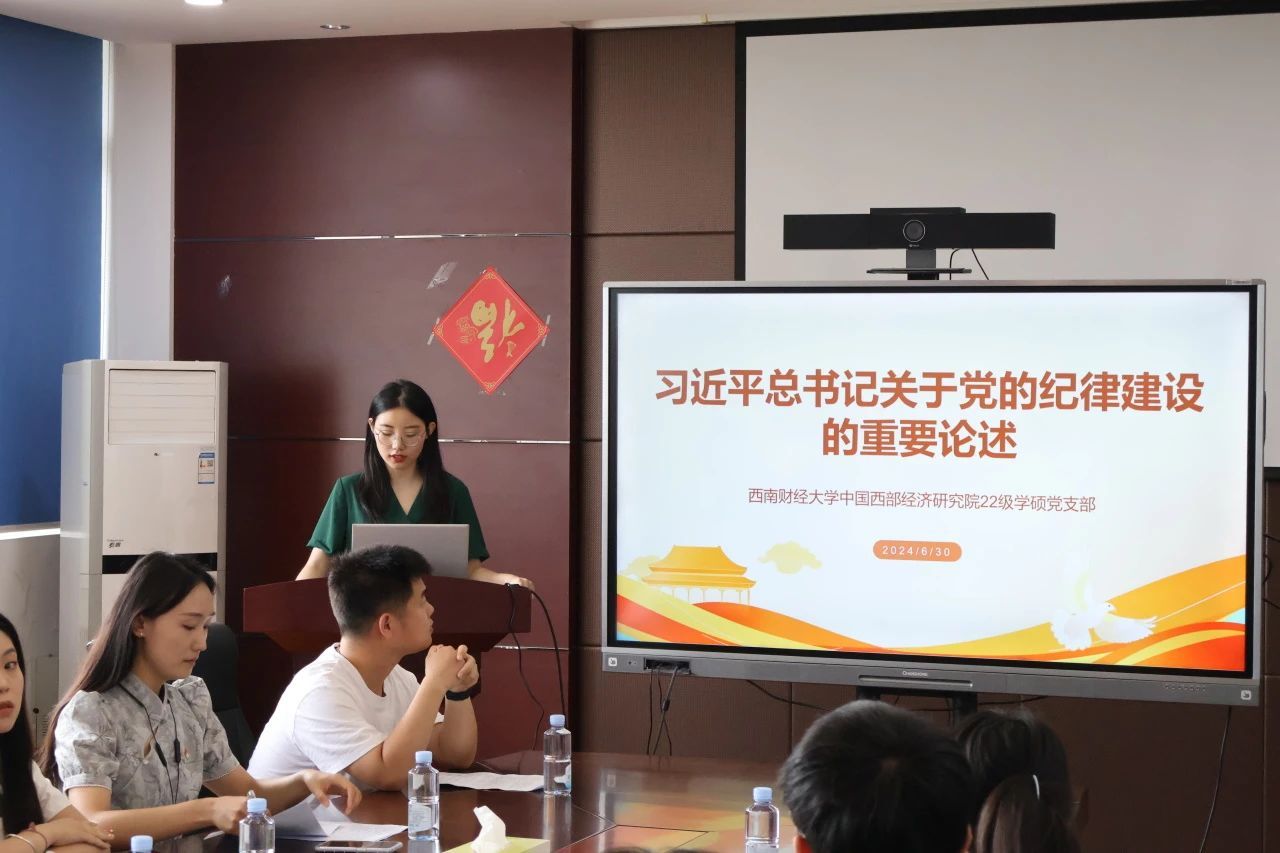 2022级学硕党支部支部委员张烜雅同志领学了2024年4月-7月习近平总书记在全国各地考察时的讲话以及在中央党校中青年干部培训班开班之际做出的重要指示。在这些重要讲话和指示中,习近平总书记反复强调纪律建设的重要性。她谈到,作为学生干部应认真学习党规党纪,在遵规守纪的前提下,安心工作、放手干事、锐意进取、积极作为。