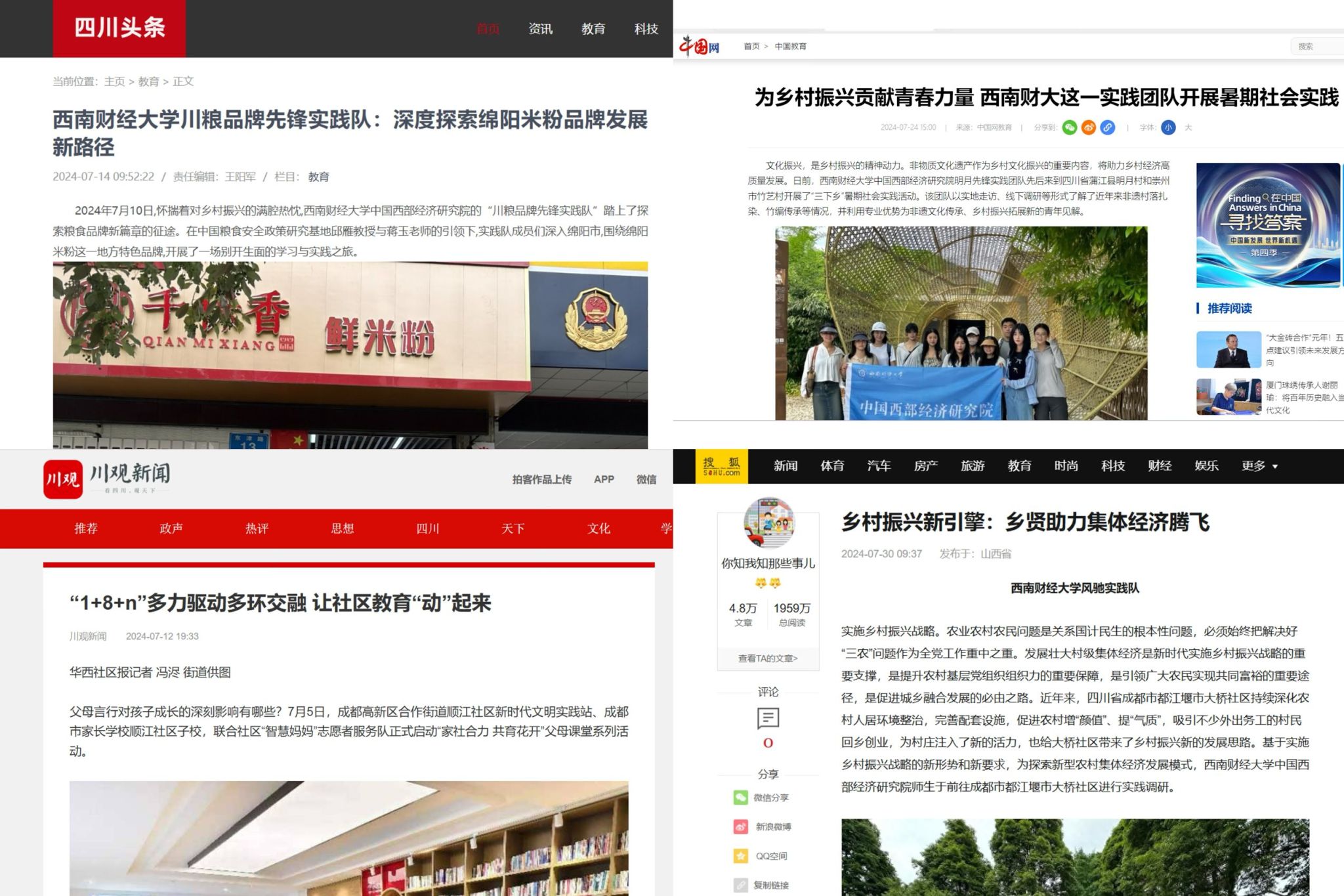 官方微信公众号开设暑期实践专栏,累计报道14篇推文专题报道,此外,相关社会实践情况还获得了获中国网、四川头条、川观新闻、微观新闻等主流媒体报道。