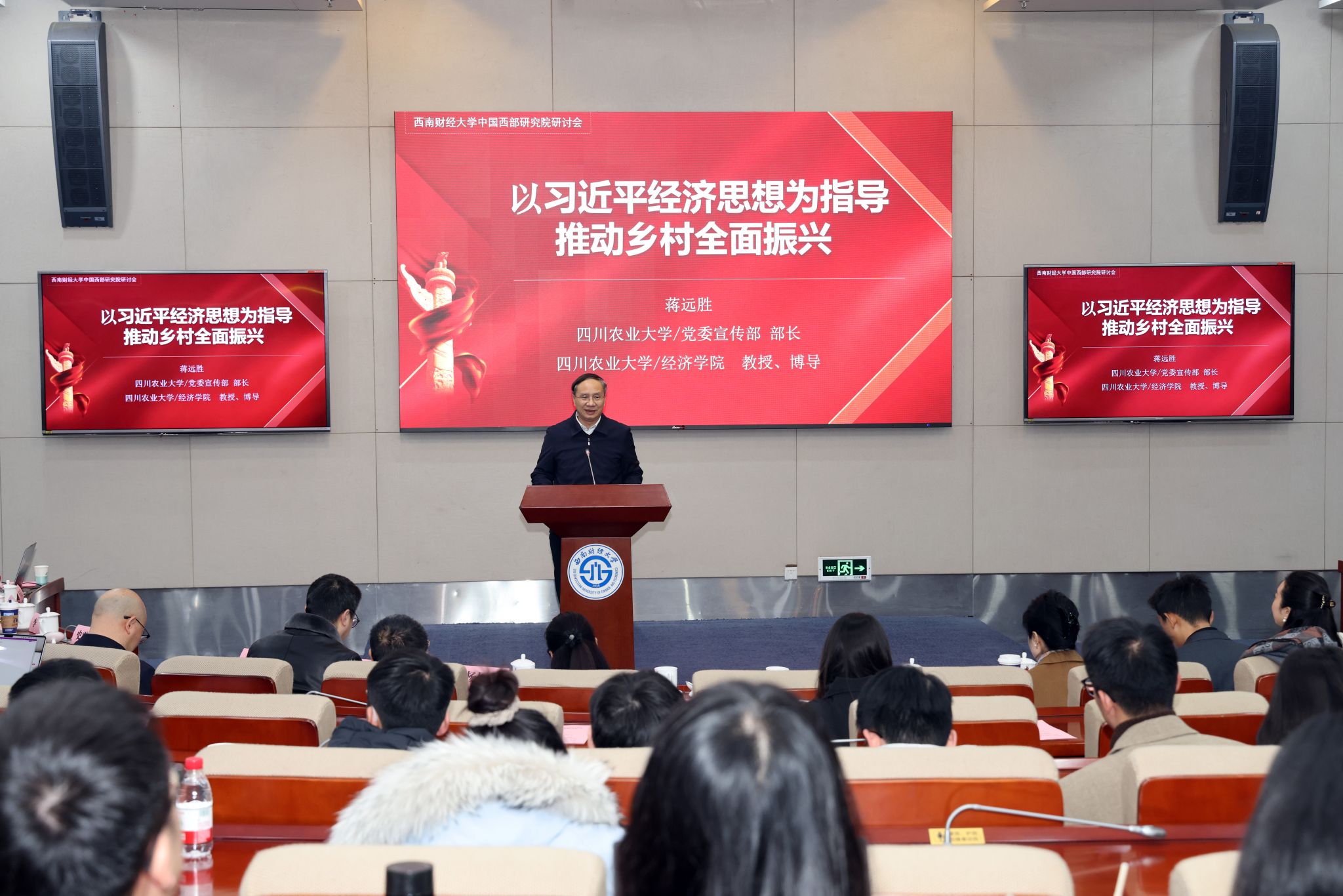 蒋远胜作主旨报告。他以"以习近平经济思想为指导 扎实推进乡村全面振兴"为题,深入解读了党的二十届四中全会精神,从习近平经济思想的核心要义出发,系统阐释了乡村全面振兴的战略定位与实践路径。